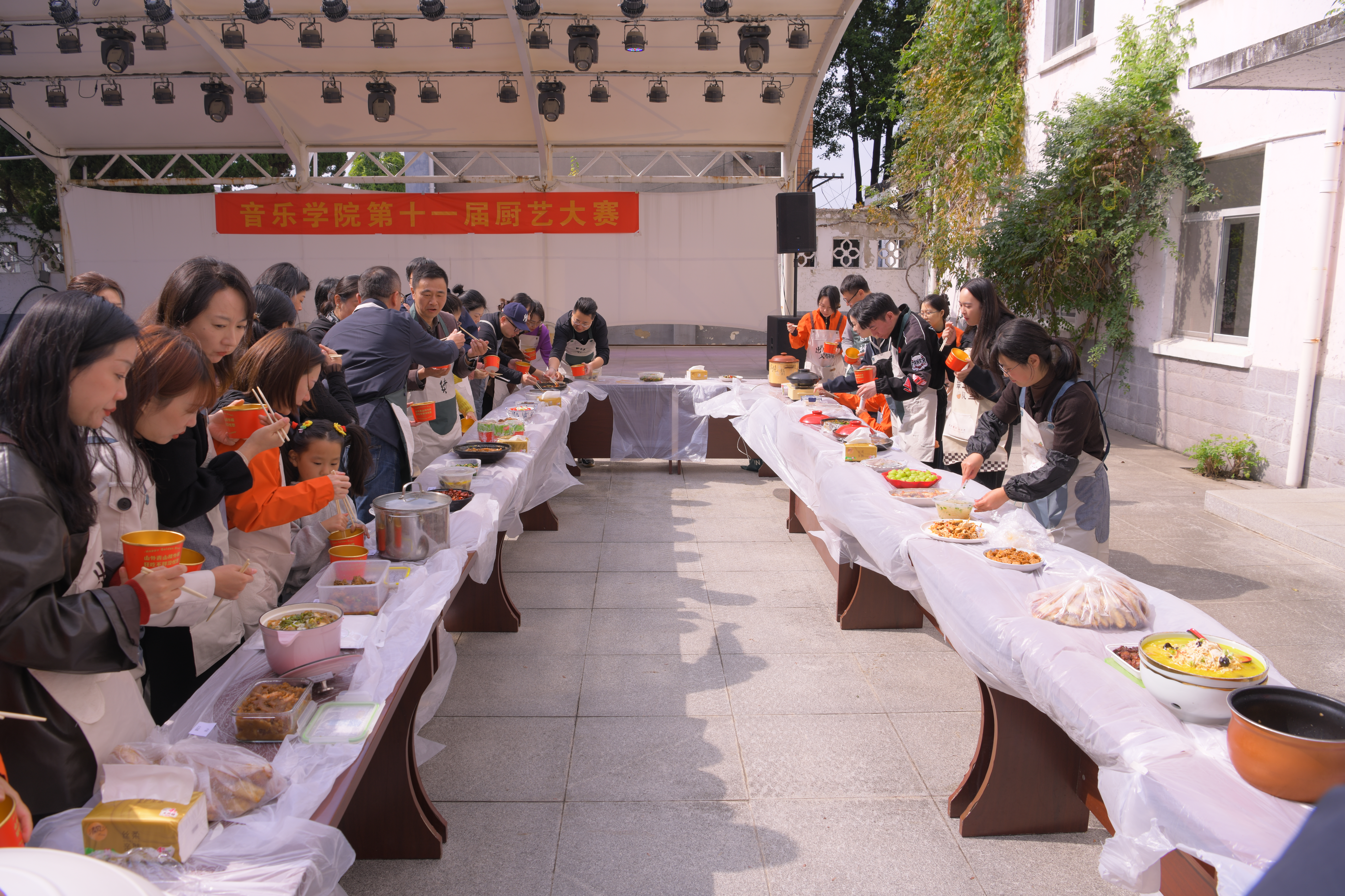 10 月 24 日,音乐学院美育楼一楼广场飘起阵阵鲜香,音乐学院第十一届教职工厨艺大赛在此热闹启幕。