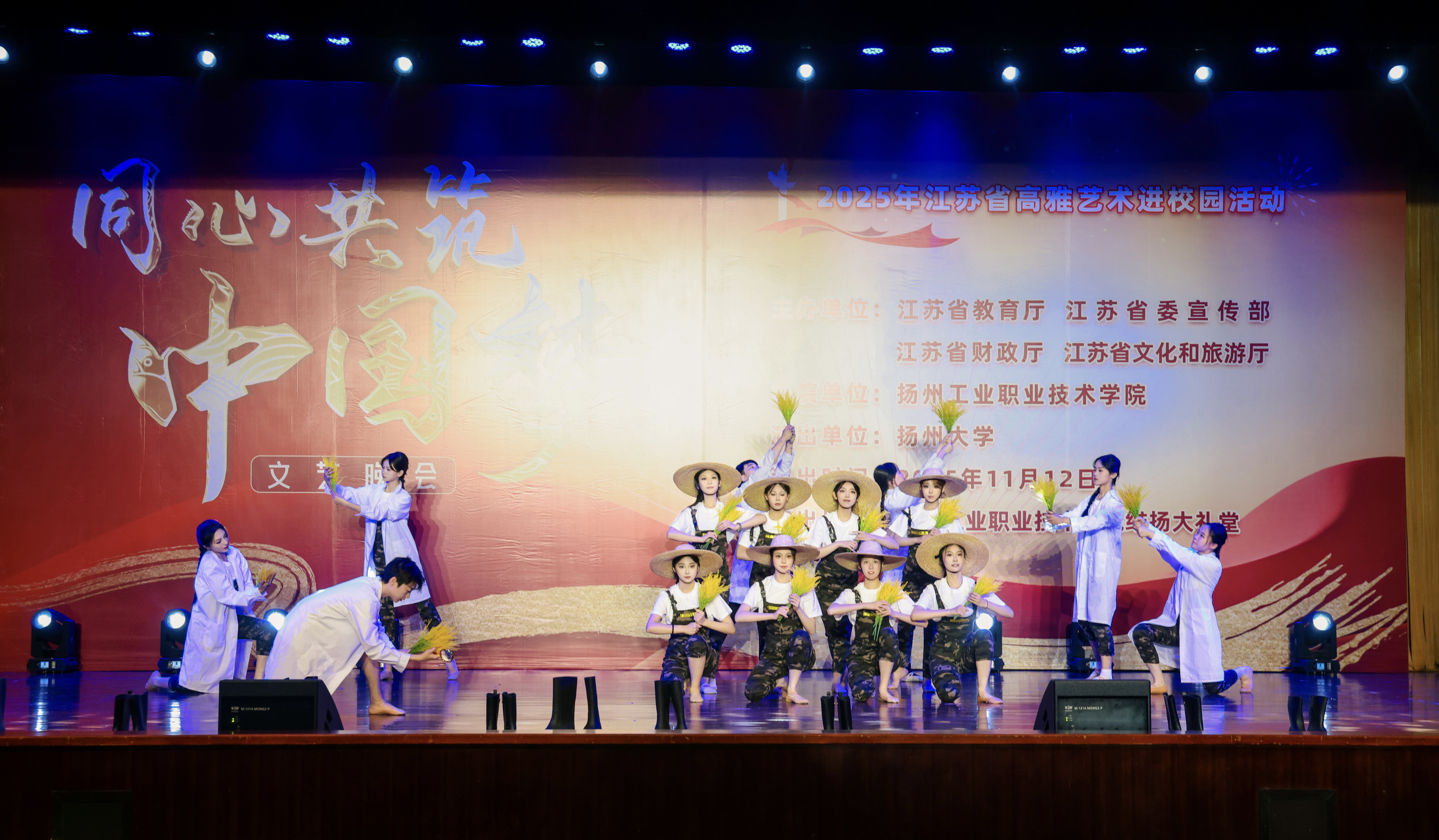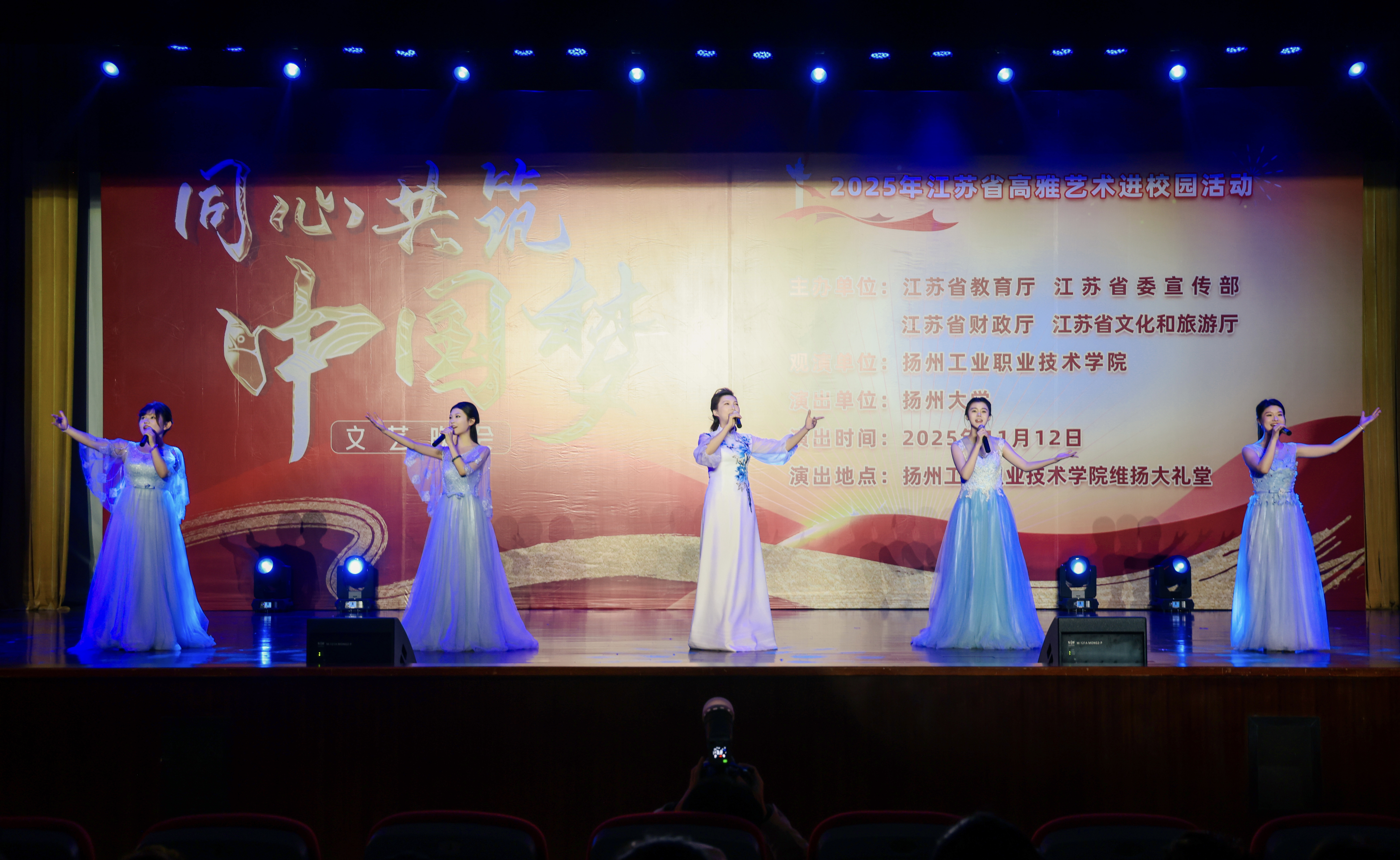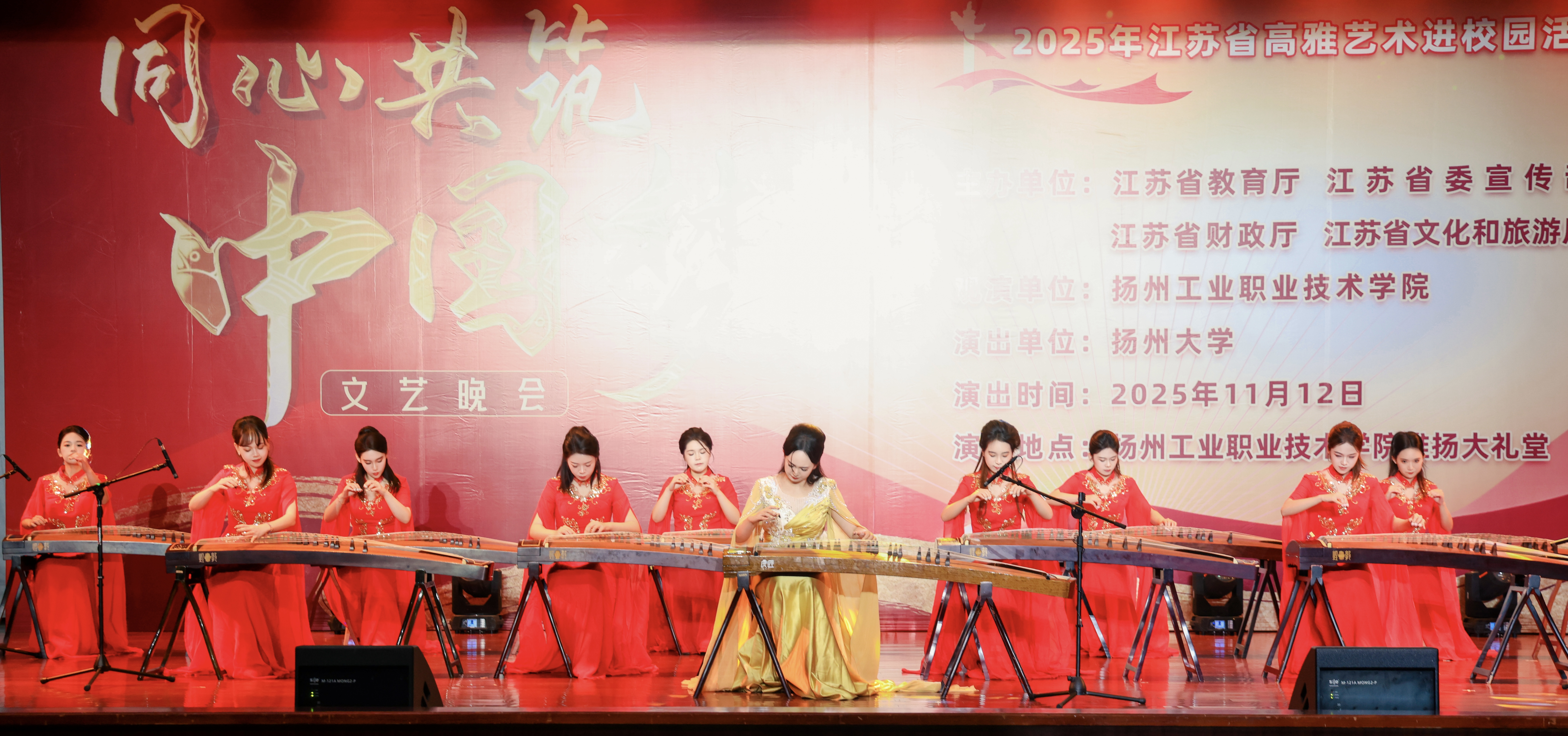 2025年11月12日晚,一场由江苏省教育厅、江苏省委宣传部、江苏省财政厅、江苏省文化和旅游厅主办,扬州大学作为演出单位的“高雅艺术进校园”动,来到了扬州工业职业技术学院。本场演出融合了民族风情、红色记忆与时代精神,以“同心共筑中国梦”为主题,在扬州大学音乐学院师生团队携精心编排的节目中,让高雅艺术之花在校园绚丽绽放。