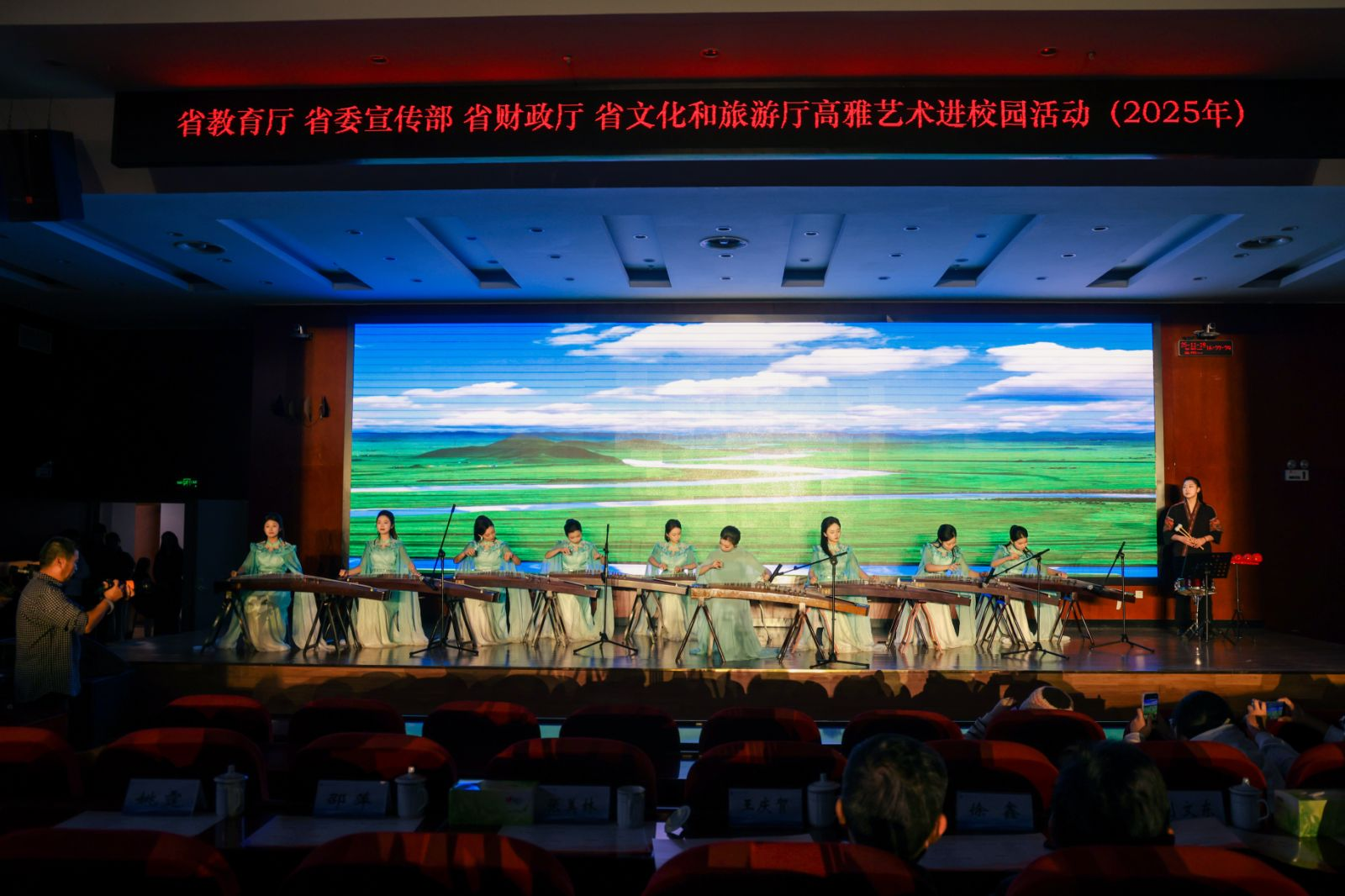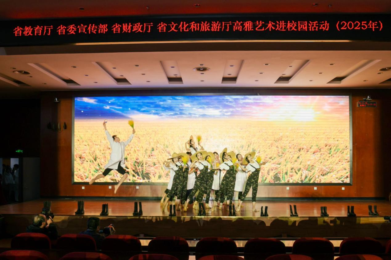 “丝路回响·文明交融”篇章里,舞蹈《禾下乘凉梦》以轻盈肢体语言,诠释了“把论文写在大地上”的时代情怀;民乐重奏《敦煌新语》融合传统乐器,将丝路驼铃与现代韵律交织,演绎文明互鉴的生动图景;二胡合奏《新赛马》以明快节奏,展现出昂扬向上的精神风貌。