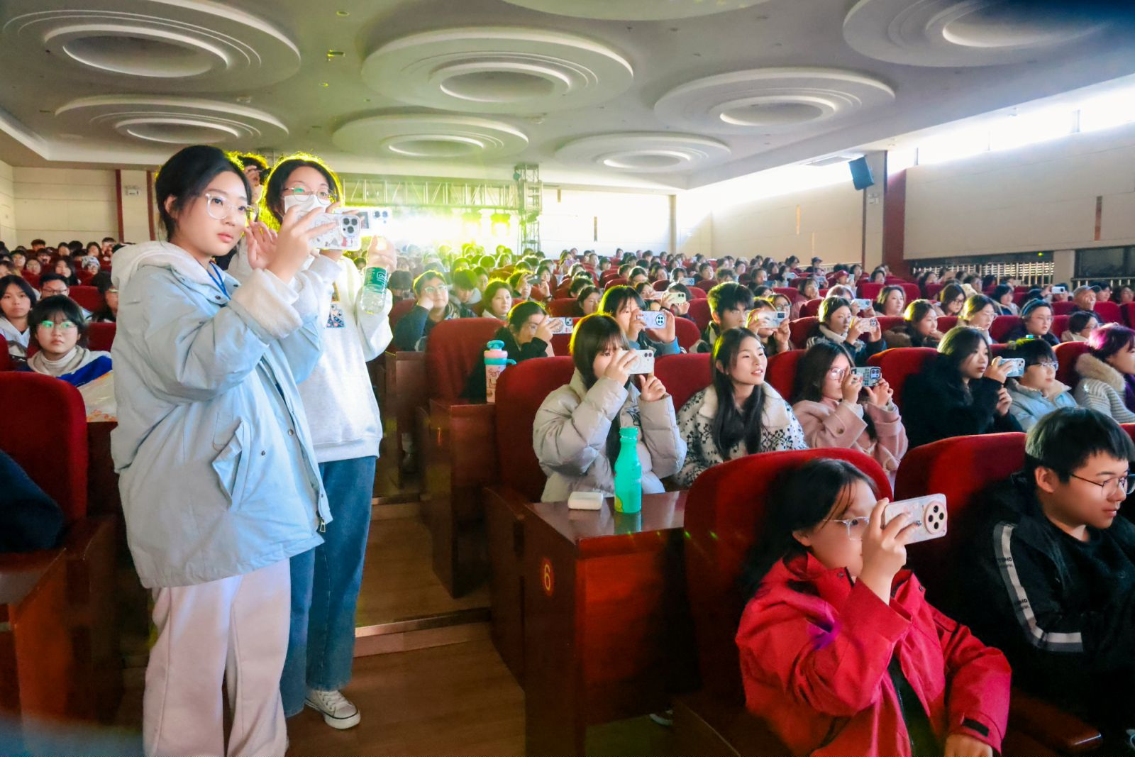 江苏旅游职业学院学生工作处处长王庆贺,江苏旅游职业学院团委书记徐鑫, 江苏旅游职业学院基础部直属党支部书记刘文东,江苏旅游职业学院烹饪科技学院党总支副书记孙虹,江苏旅游职业学院国际商务学院党总支副书记杨振方,扬州大学音乐学院副院长、公共艺术教育中心主任姚霆,与江苏旅游职业学院的老师和学生们共同观看了演出。