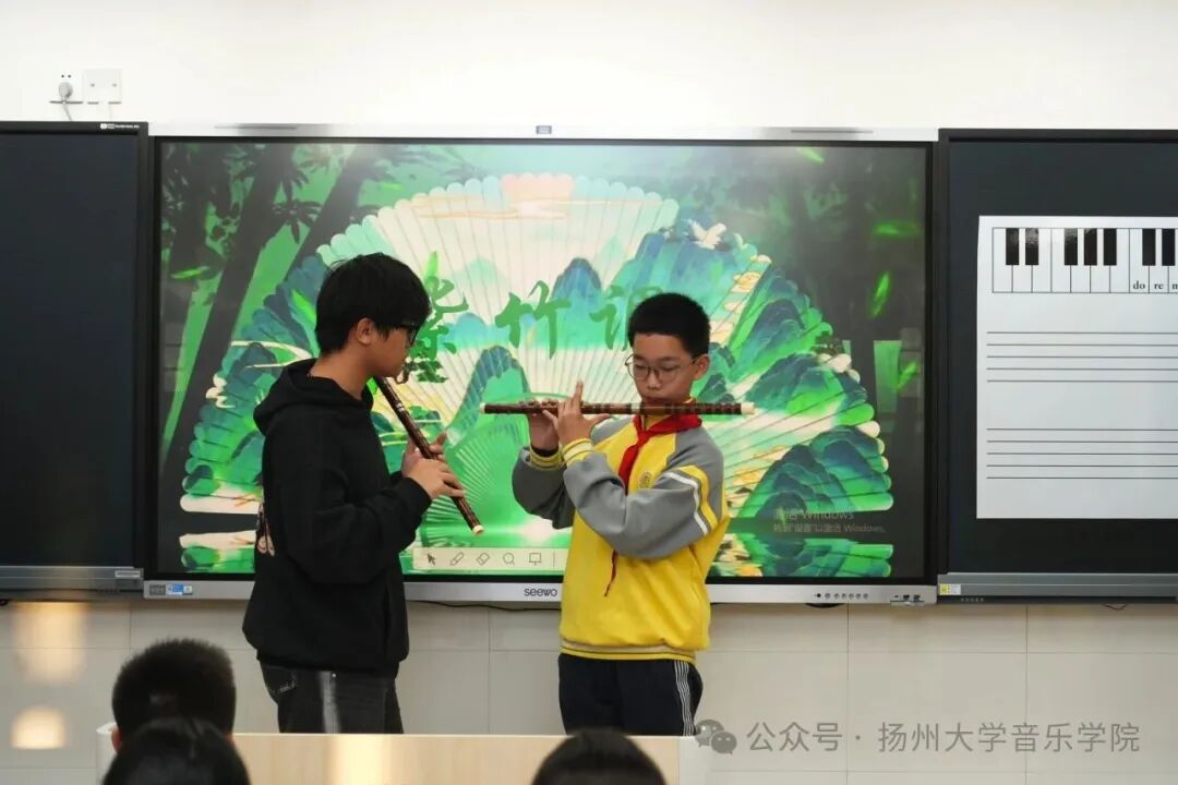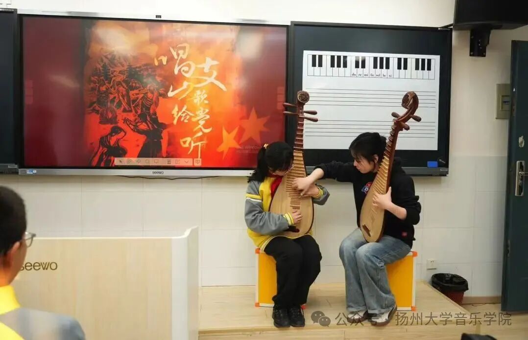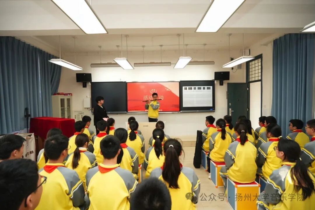 随后开展的"奏响运河风华,传承红色基因"音乐思政课,创新性地将运河文化与红色精神相融合。活动通过"讲、演、猜、享"四个环节,以民族乐器展示、经典曲目演绎、音乐竞猜互动等生动形式,为中学生们带来了一场沉浸式思政课堂。琵琶独奏《唱支山歌给党听》、竹笛演奏《紫竹调》等精彩节目,让同学们在音乐中感受红色文化的魅力,增强文化自信和爱国情怀。