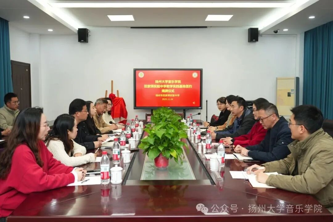11月24日,音乐学院与扬州市田家炳实验中学成功举行教学实践基地签约揭牌仪式,并举办了"奏响运河风华,传承红色基因"音乐思政课活动,这是推进大中小学思政教育一体化的创新实践。