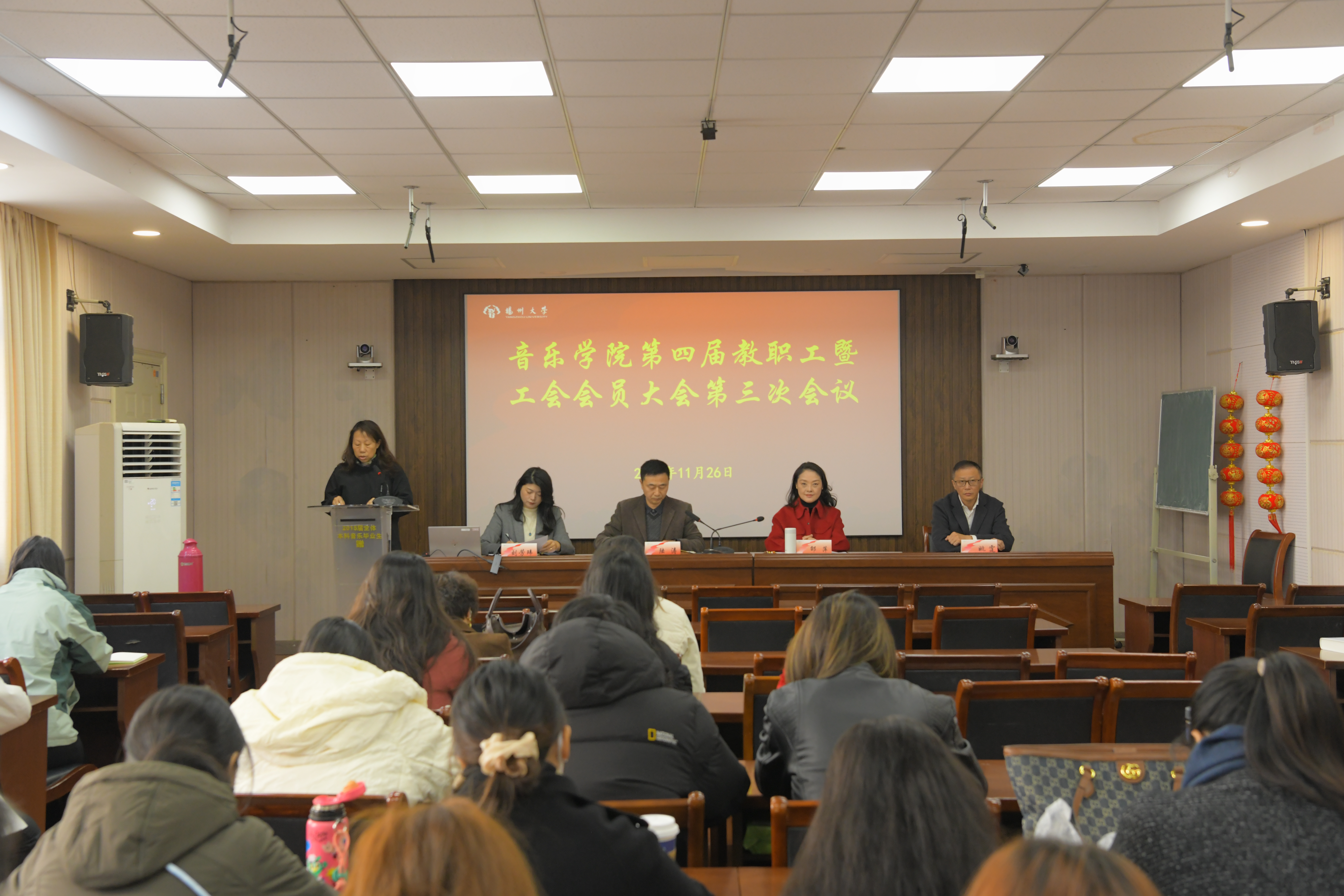 2025年11月26日,音乐学院第四届教职工暨工会会员大会第三次会议在学院美学堂隆重召开,全体院领导及工会会员参加会议,会议由学院党委副书记刘芳玮同志主持。