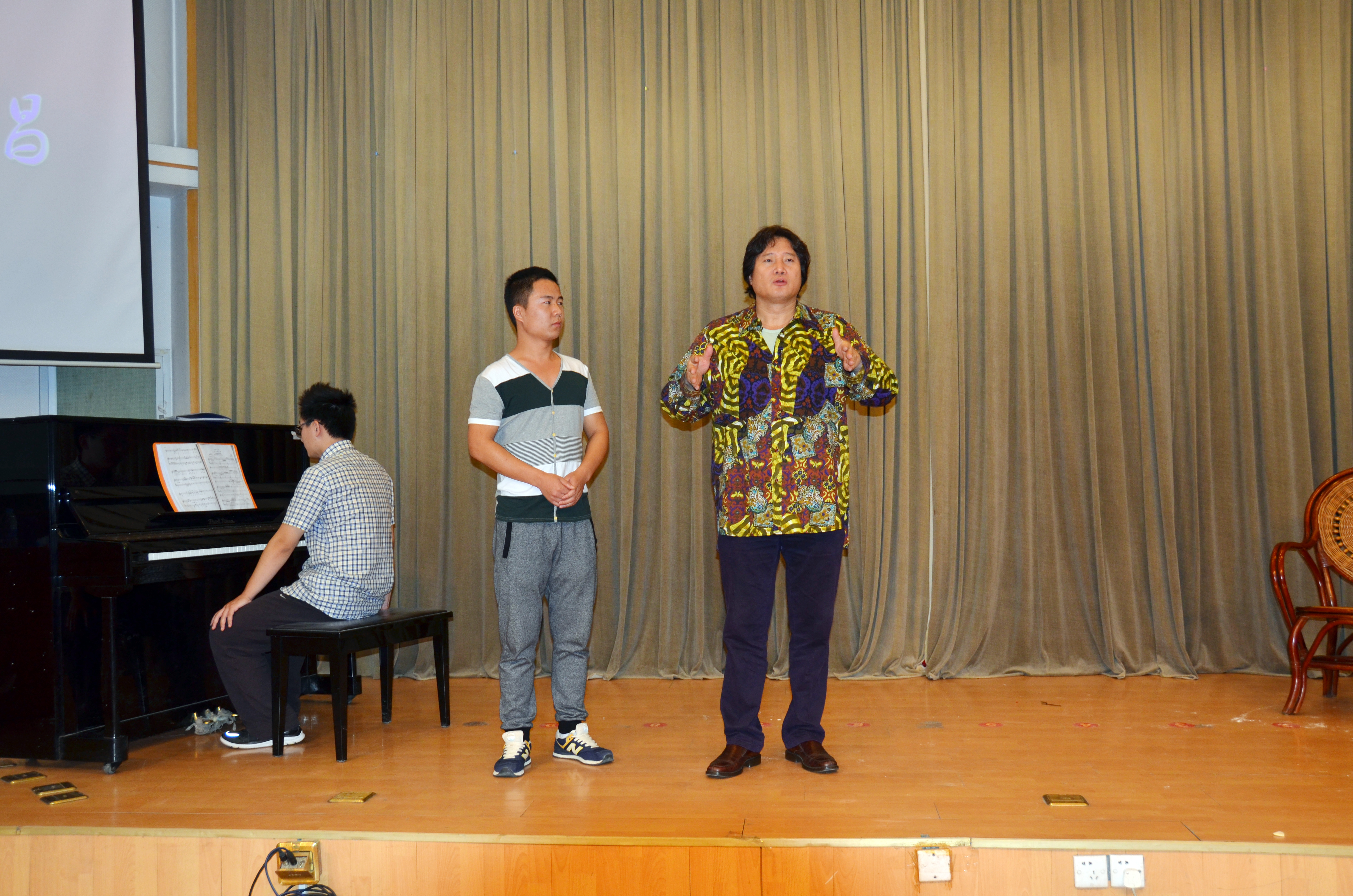 9月25日上午著名歌唱家戴玉强来我院讲学,“大家谈歌唱”音乐沙龙在逸夫馆报告厅举行。戴玉强教授与现场师生进行互动与交流,亲自示范、悉心指导音乐学院师生的演唱,其画龙点睛、诙谐幽默的教学风格赢得了师生们的阵阵掌声。