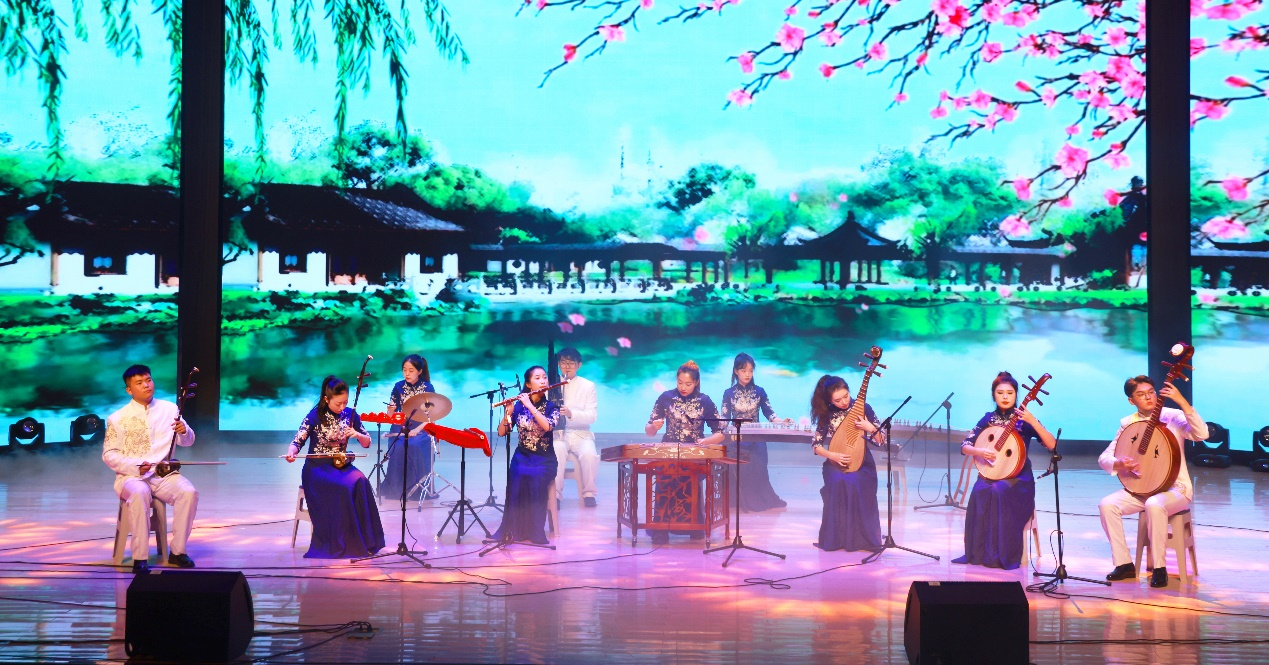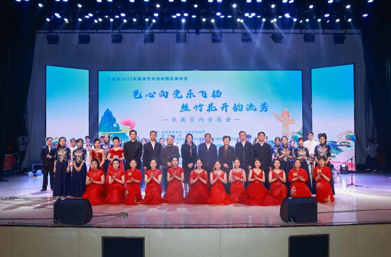 11月9日下午,由江苏省教育厅、财政厅组织的2022年度高雅艺术进校园活动“艺心向党乐飞扬,丝竹花开韵流芳”民族室内音乐会走进了南京邮电大学通达学院,带来了一场精彩的演出。通达学院院长王国平、党委书记朱清、副院长刘允、党委副书记兼副院长王楷、团委副书记沈冰冰、团委社团管理部部长刘甜甜;扬州大学音乐学院院长邵萍,扬州大学公共艺术教育中心主任、音乐学院副院长姚霆出席了本场活动。本场演出座无虚席,近千名师生观看了演出,受到了一致好评。