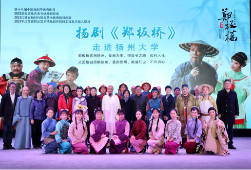 我校于3月18日晚19:00在文汇路校区大礼堂顺利演出扬剧《郑板桥》,本次活动由校党委宣传部主办,校学生工作部(处)、校团委协办,音乐学院与校公共艺术教育中心承办。校机关党委、校工会、校社会合作与服务处、海外学院、音乐学院等职能部门与学院负责人出席本次活动,现场氛围热烈,吸引了数千在校学生的热情参与。