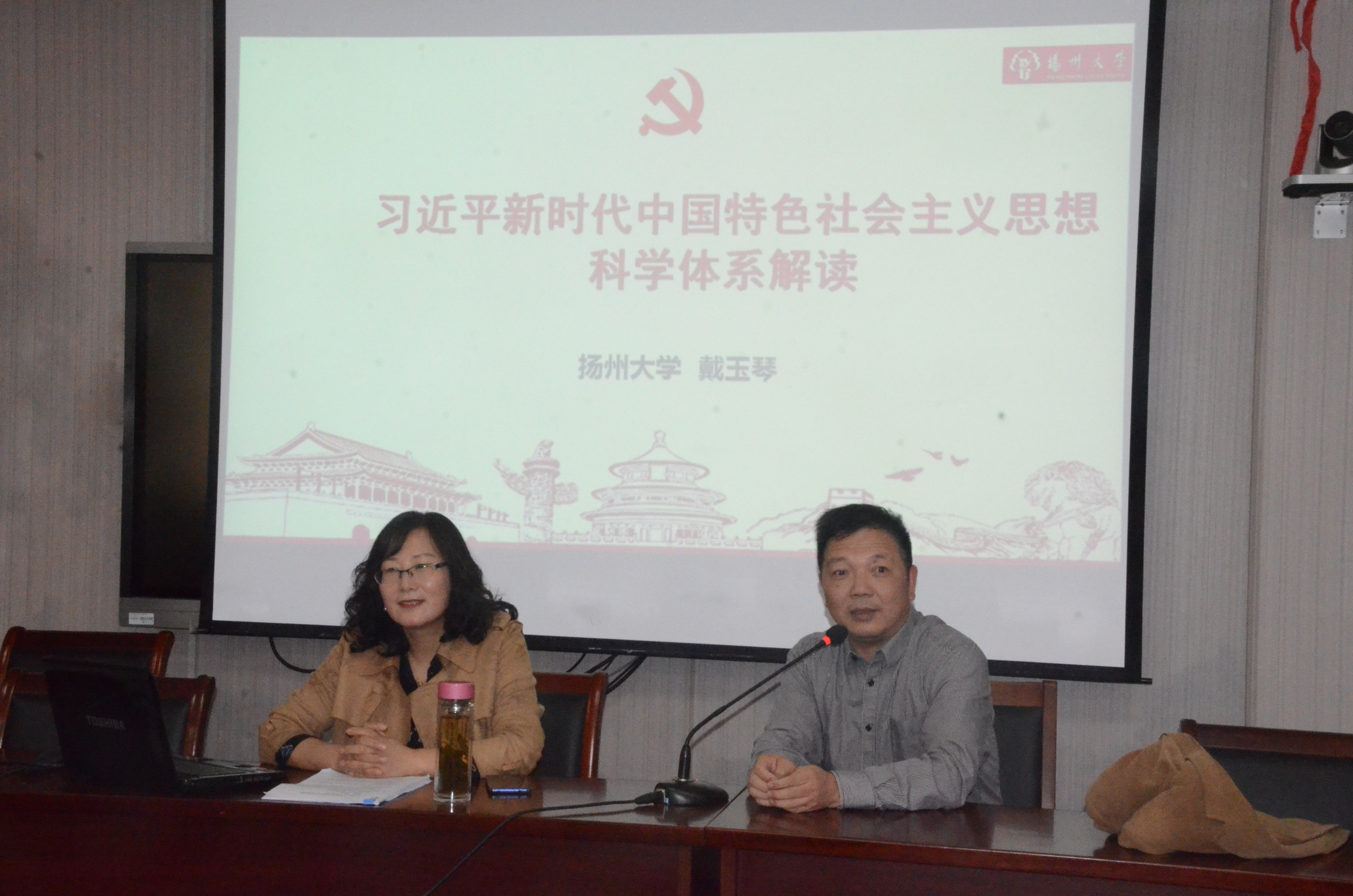 学院党委邀请了马克思主义学院戴玉琴教授为学院全体师生党员作题为“习近平新时代中国特色社会主义思想科学体系解读”专题讲座。戴玉琴教授从中国特色社会主义进入新时代的依据、中国特色社会主义进入新时代的特征和习近平新时代中国特色社会主义思想的主要内容三个方面进行了解读,重点讲解了新时代坚持和发展中国特色社会主义的根本立场、战略安排、总体布局、根本动力、本质要求和战略支撑等内容。