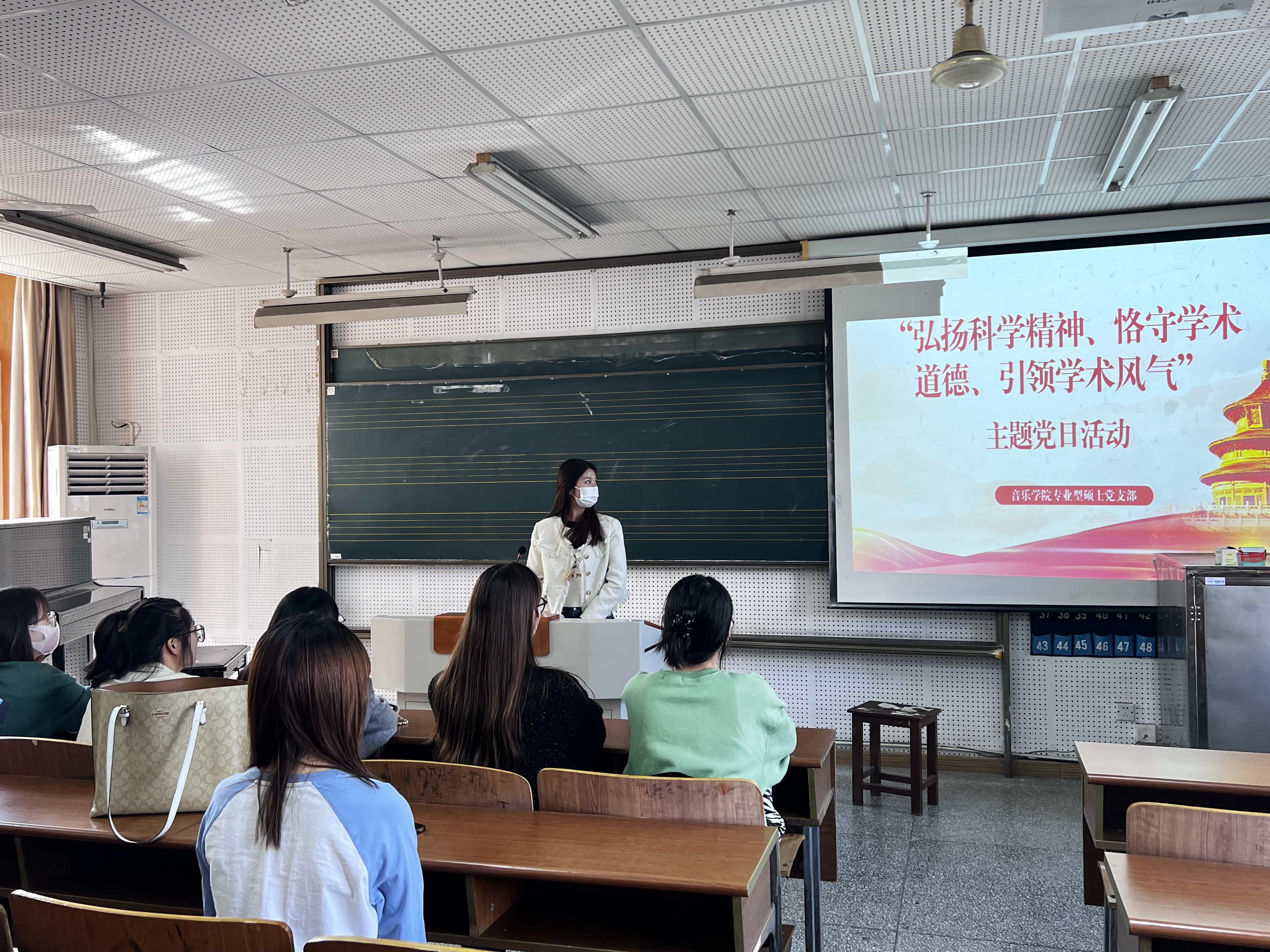 为了深入学习全国科学道德和学风建设教育报告会的有关精神,10月31日上午,扬州大学音乐学院专业型研究生党支部开展“弘扬科学精神、恪守学术道德、引领学术风气”主题党日活动,本次活动由组织委员都晓敏同志主持。