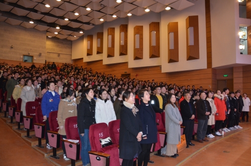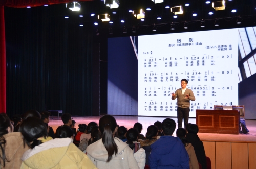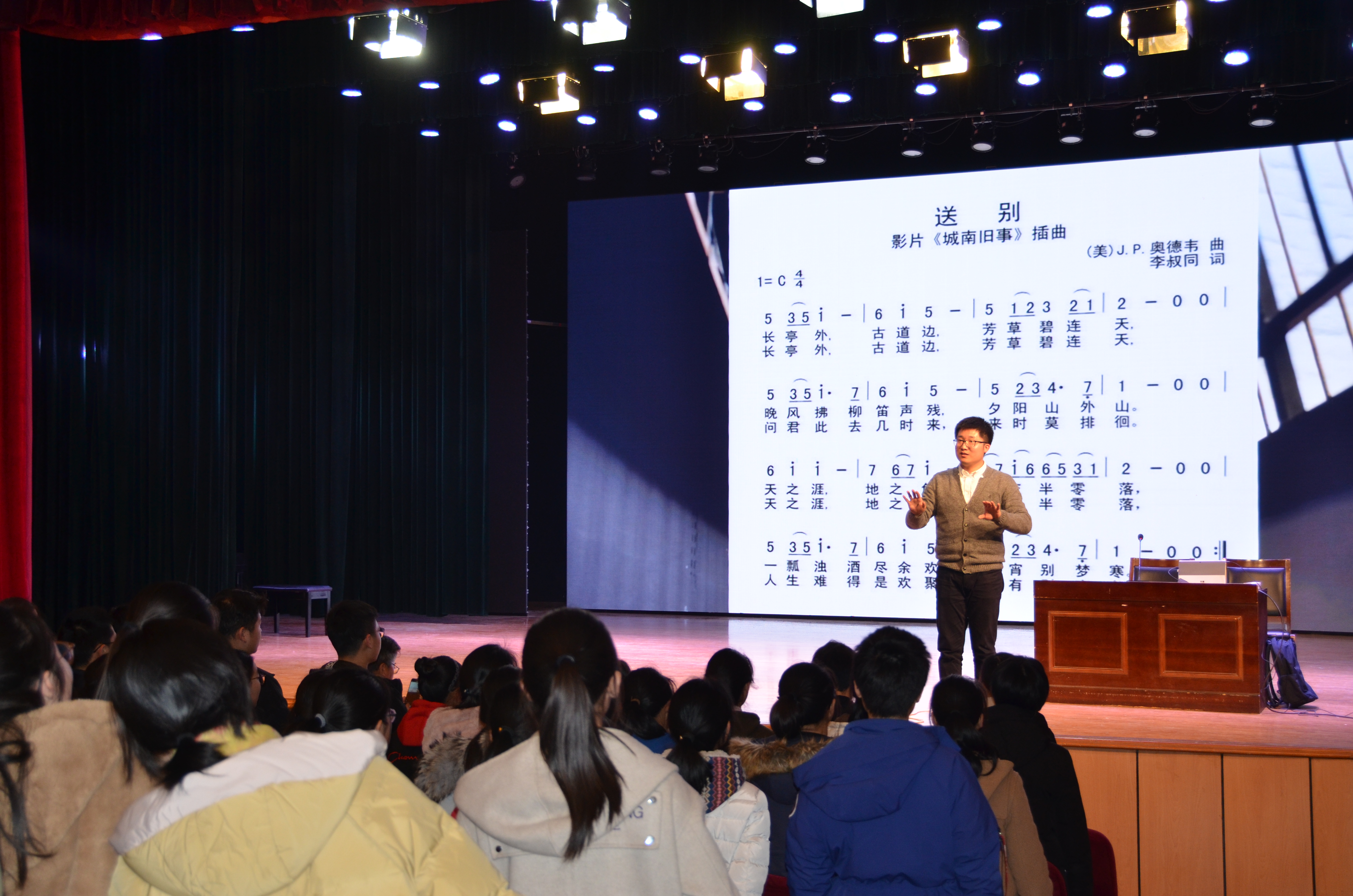 参观学习结束后,支部成员来到教育名校江苏省海门中学开展实践交流活动。院党委书记李向阳代表学校向海门中学授予“优秀生源基地”匾牌并介绍了扬州大学基本情况,院青年教师党员帅垒为海门中学800余名师生作了“合唱与指挥”专题讲座,他从合唱艺术的分类和合唱指挥的应用两个方面介绍了合唱指挥的魅力,并与现场师生一起合作了歌曲《送别》。帅垒老师讲课幽默风趣,讲座内容丰富翔实,活动现场掌声不断、气氛热烈,展示了扬州大学的良好风采。