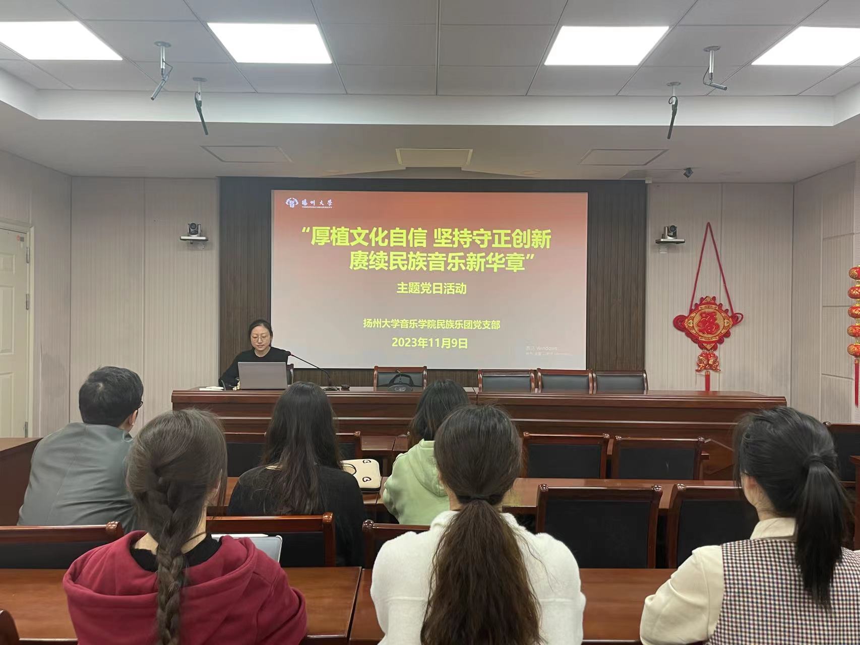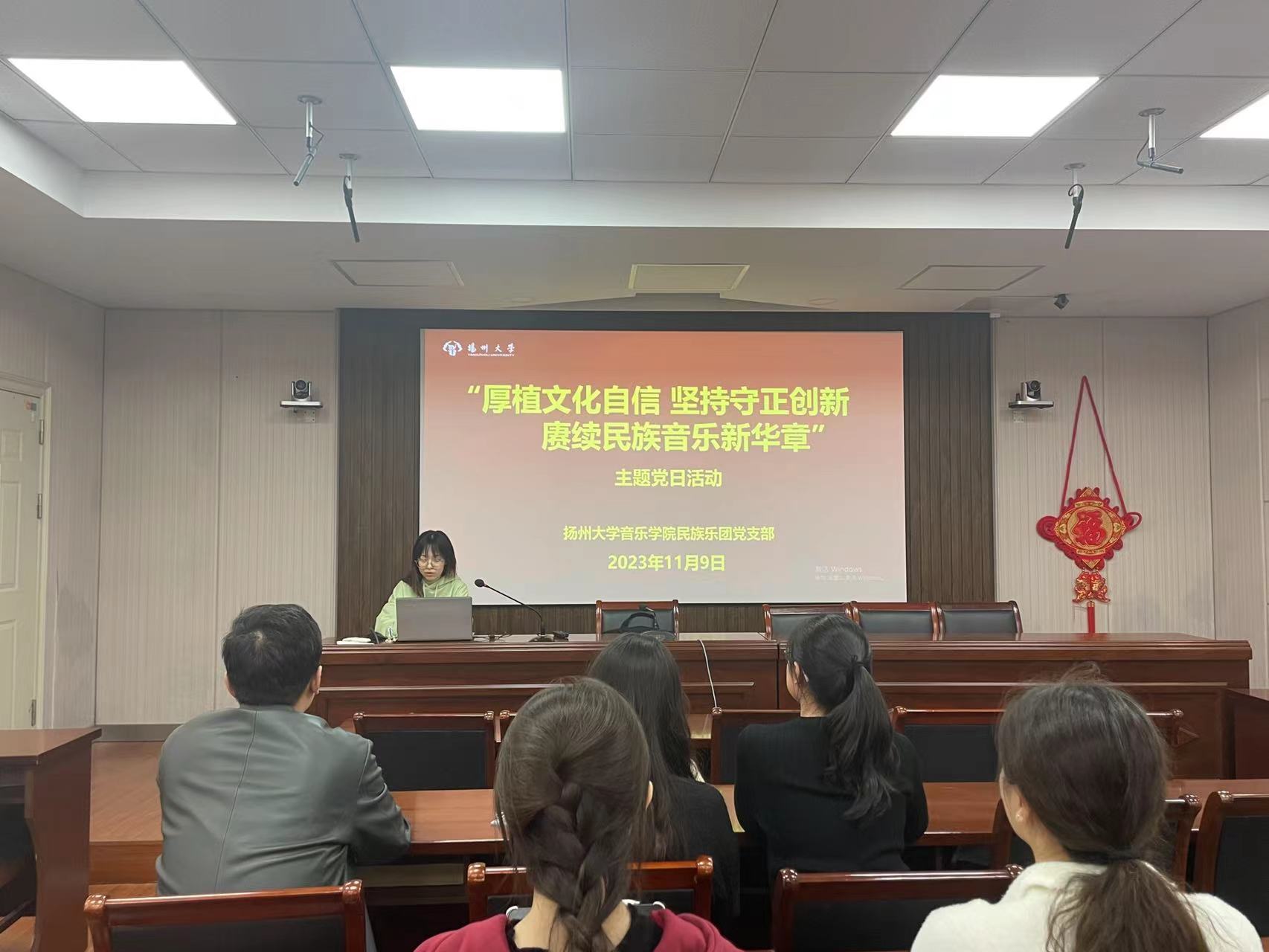 为了深入学习习近平总书记《在文化传承发展座谈会上的讲话》相关精神,11月9日上午,扬州大学音乐学院民族乐团党支部开展了“厚植文化自信 坚持守正创新 赓续民族音乐新华章”主题党日活动,本次活动由宣传委员梁亦涵同志主持。