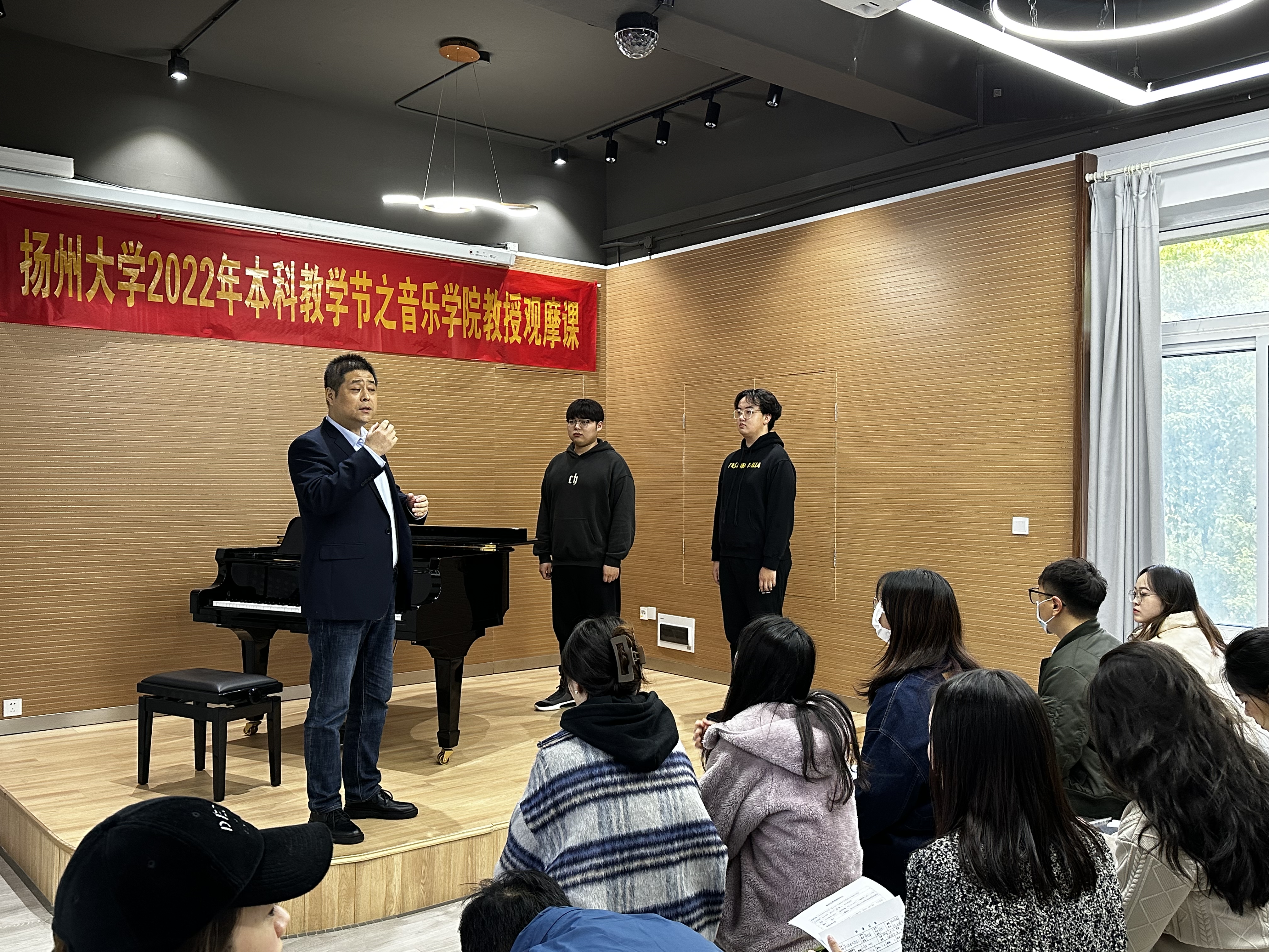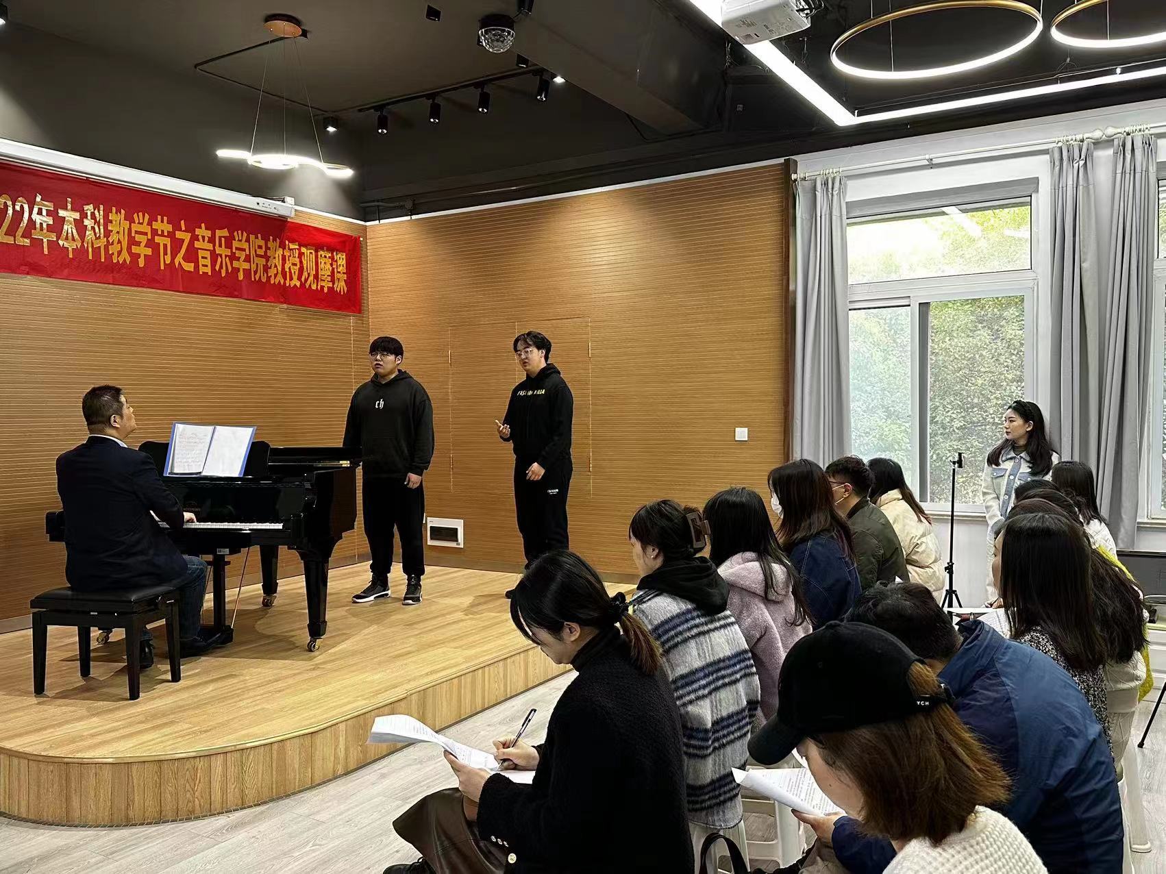 11月15日,一堂美声演唱与思政内容交融的声乐课在文汇路校区音乐学院美声楼开讲,30余名师生陶醉在歌与乐、情与理的浓郁氛围里。这是由校金讲台奖获得者我院单宏健教授主讲的《声乐演唱与教学Ⅰ》之陆在易声乐作品《望乡词》的演唱及家国情怀的体验与表达,授课班级是2020级音乐班。