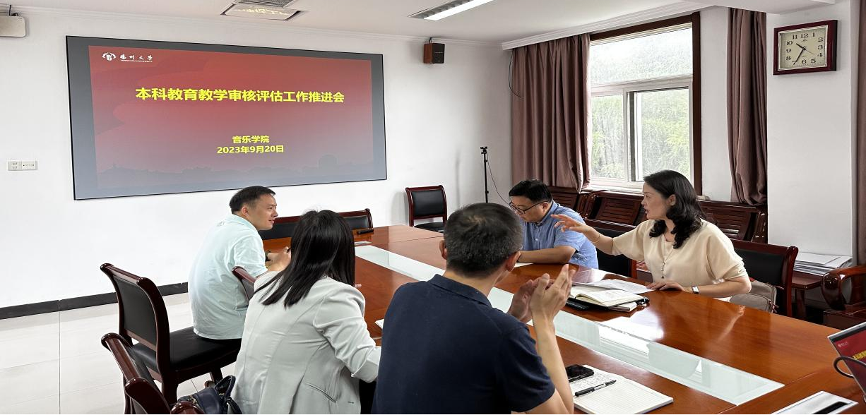 9月20日上午,扬州大学本科教育教学审核评估各学院报告会在文汇路校区召开,校长丁建宁主持此次会议。会议过后,音乐学院立即召开新一轮本科教育教学审核评估工作推进会,旨在传达丁校长的讲话精神,总结前期工作,明确下一步重点任务和措施,为有效推进音乐学院本科教育教学审核评估工作做准备。院党委书记房东升、院长邵萍、院党委副书记吴伟、副院长胡亮、副院长姚霆参加了此次会议。